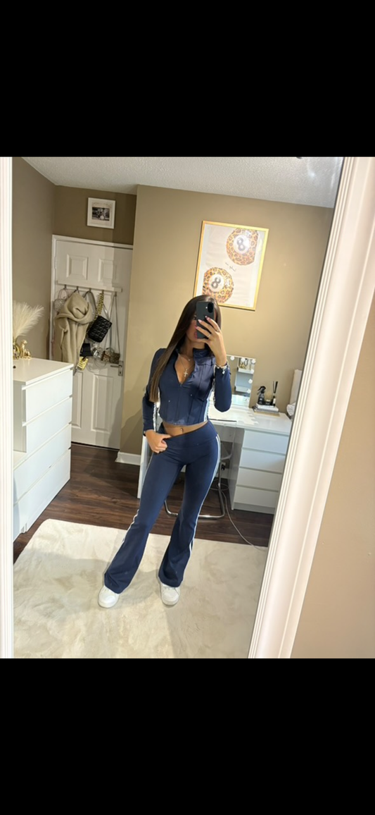Usco black flare leg yoga suit rouche bum